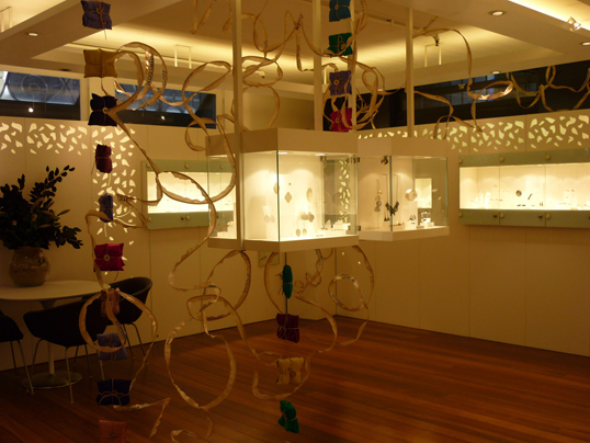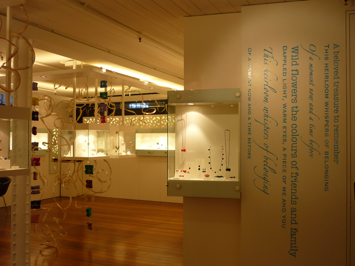 e.g. etal Mia worked with e.g etal owner Emma Goodsir, to create a delicate Summer in store installation. Inspired by the idea of the heirloom, Mia created a series of sewn curling tendrils, hand screen printed with selected words and poetry evoking the feeling of something treasured, something shared. Strings of silken packages tumbled from ceiling to floor, and poetry in a cornflower blue spilled down the walls...