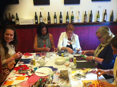 Mia and her participants had a fantastic November at the decadent Chez Olivier Le Bistro in Greville St Prahran. Experimenting with texture and colour, they developed their collage techniques and created some fun, vibrant works!