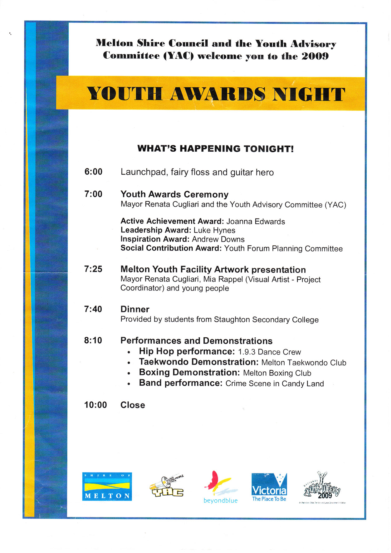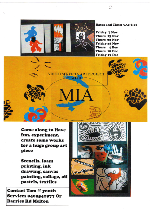 Melton Youth Services As part of the construction of the new Youth Services facility in Melton, the Melton Council funded a large-scale art project for the new building. Mia Rappel was the hired artist and project manager for the public art project. Mia worked with the youth services team, and a variety of young people over a 4-month period in 2008-2009 to develop, create and install the artwork. Over the months weekly art workshops were run at the youth services centre. Young people had the opportunity to experiment with materials and develop their ideas; they worked with collage, stencils, drawing, ink painting, text, beading and fabrics. The theme was individuality and the aim was to engage, explore and create! The result is a permanent installation of 18 totem like aluminium pillars with a jigsaw of unique art works. 75 individual works are included with many more created in the development process. An estimated 120 young people and staff contributed to the overall work.