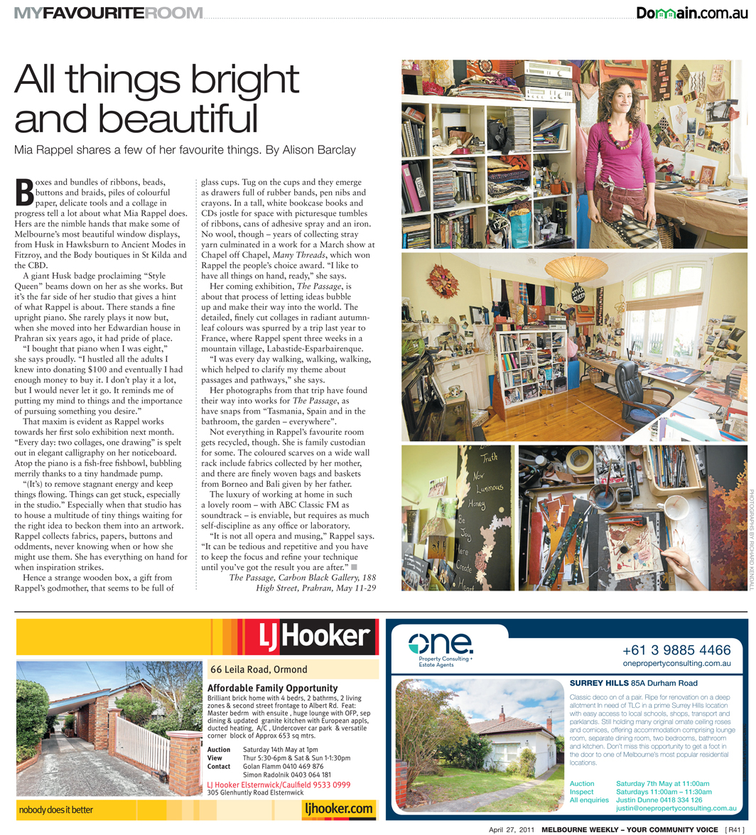 • An artist’s rights of passage. Stonnington Leader. May 2011